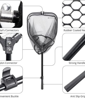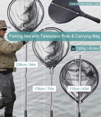 • Sale! Fishing Net with Telescopic Handle,Durable Landing Net for Freshwater & Saltwater, Foldable Fishing Nets for Fish, 20 lbs Capacity, Rubber Coated Netting, Length 50.7″, Hoop 17.7″ x 15.9″, Depth 14″