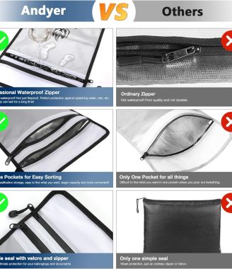• Upgraded Two Pockets Fireproof Document Bag (2000℉), andyer 15”x 11”Waterproof Fireproof Money Bag for Cash with Zipper, Important Document Storage Organizer for Valuables, Legal Documents Safe