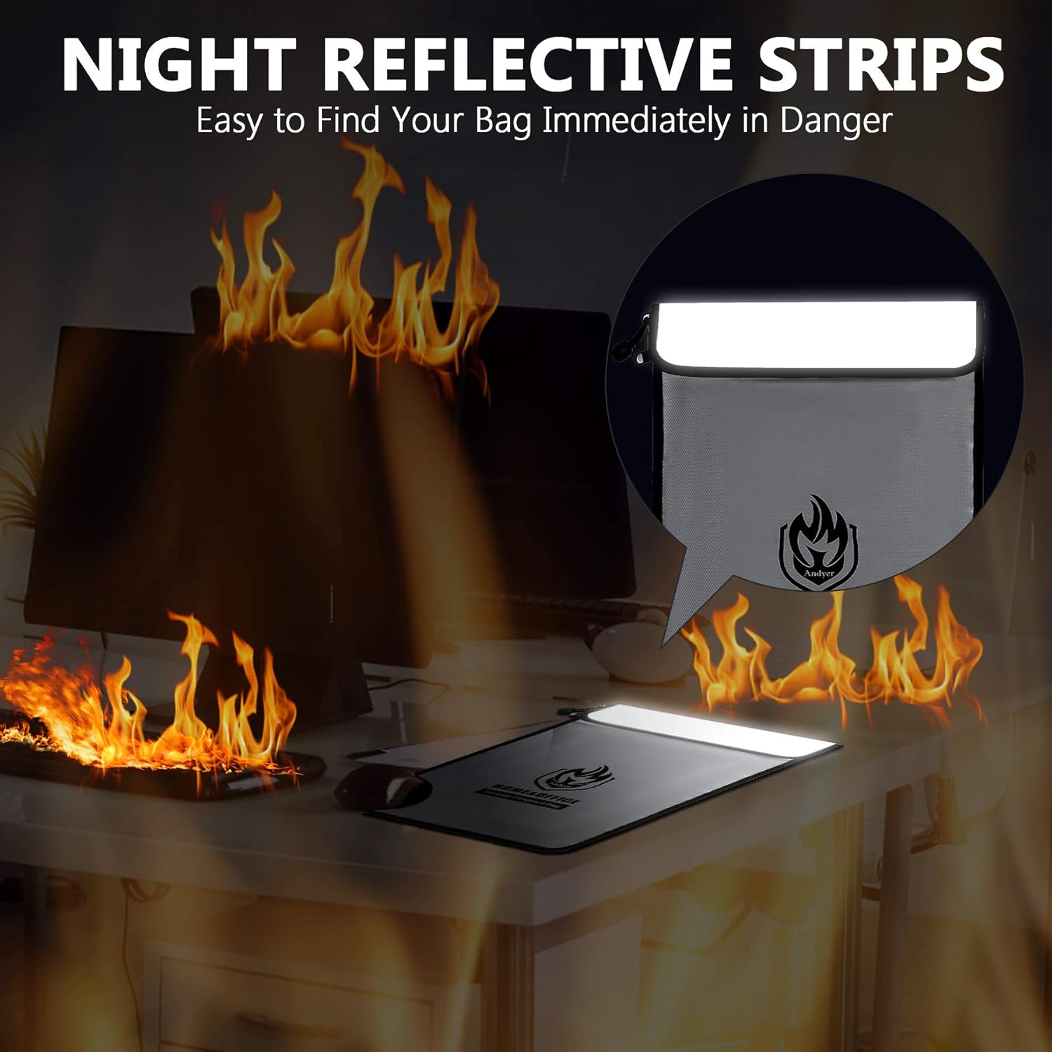 Introducing the Upgraded Two Pockets Fireproof Document Bag by andyer, designed to provide premium protection for your valuables and important documents. With a fireproof rating of 2000℉, this 15”x 11” waterproof bag ensures your cash, legal documents, and other important items stay safe in case of a fire emergency.